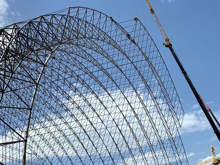 (2)网架加工前应对现场尺寸进行复测,确认无误后方可进行加工、安装;网架制作、运输、安装应遵守《空间网格结构技术规程》JGJ7-2010、《钢网架龙口螺栓球节点》JG/T 10-2009、《钢网架龙口螺栓球节点用高强度螺栓》 GB/T 16939-2016、《龙口钢结构龙口工程龙口施工规范》 GB50755-2012、《龙口钢结构龙口工程施工质量验收标准》 GB50205-2020。